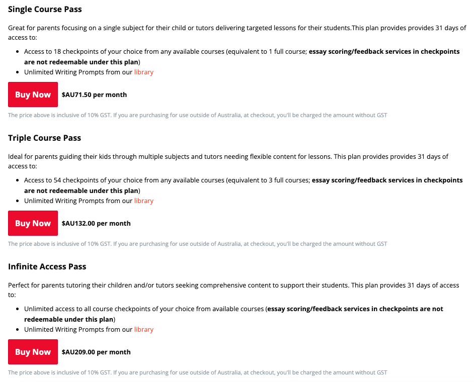 Tutors+ Resources equips tutors and parents with access to bite-sized course checkpoints and writing prompts from Exam Success, perfect for self-guided tutoring. Enjoy the flexibility of a 31-day access period, compared to the standard 6-month course duration, tailored for those who prefer shorter commitments.