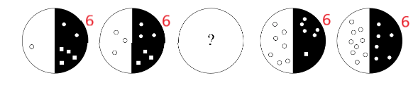 With many similar elements within the problem, we can assume that we're dealing with a number pattern. Let's test this hypothesis and count the small white circles on the left side.