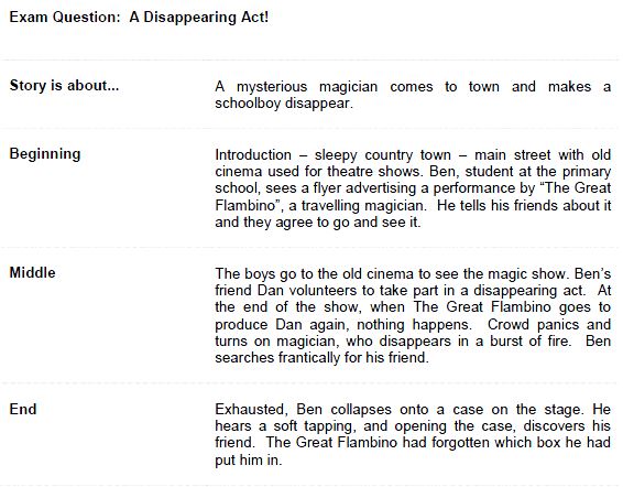 Let's look at a story plan again to summarise the structure of a main event and the ending.